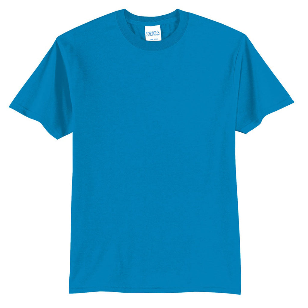 Order the printed Port & Company Men's Sapphire Core Blend Tee for each member of your company team that attends your next outdoor event. Wear the tee as an only layer when you socialize with friends on the backyard deck and as the first layer of apparel for when you attend business seminars. Make sure to add a custom logo on the large imprint area to let professional peers know about your products and services. This custom t-shirt is a perfect choice for your next custom apparel purchase. The classic style and affordable price point makes it great for any budget.Highlights