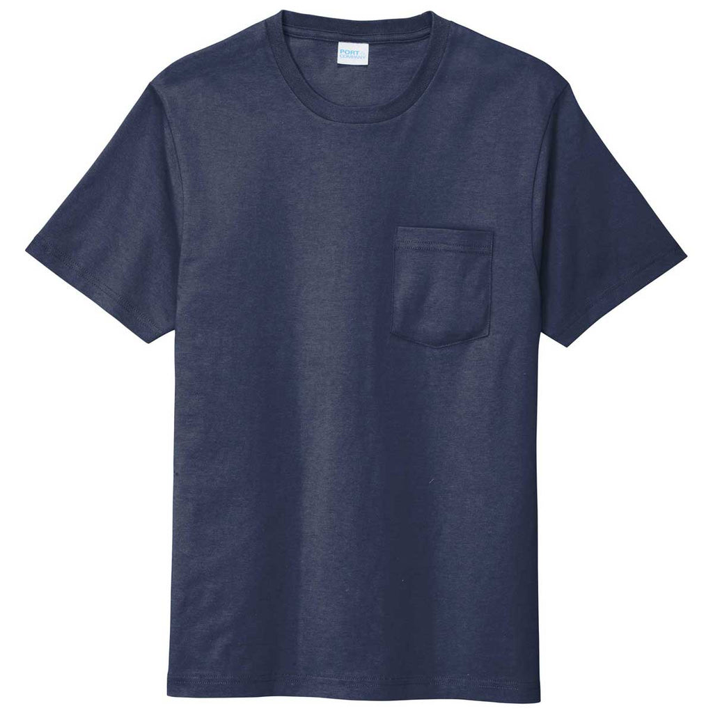 Create screen print for the Port & Company Navy Blue Bouncer Pocket Tee for a look that can serve as anything from employee apparel to active wear with a custom logo. Add a company logo to create a laid back, yet clean cut look for workers with the roomier fit combed ring spun cotton tee with a chest pocket. An inch of added length offers extra coverage when moving around whether stacking boxes or going for a run. The heavier fabric is durable and easy to care for if daily wear is needed. Place an order today to have these for your logoed apparel line.Highlights