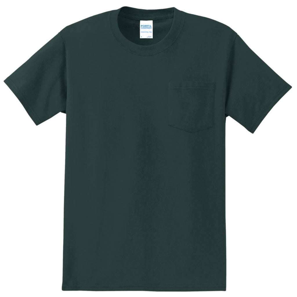 The Port & Company Men's Dark Green Essential Pocket Tee is a classic t-shirt that will make sure your brand's custom logo or design always gets the attention it deserves. On the chest, a pocket adds extra visual impact to this wearable piece, which is made from a comfortable, breathable fabric.Highlights