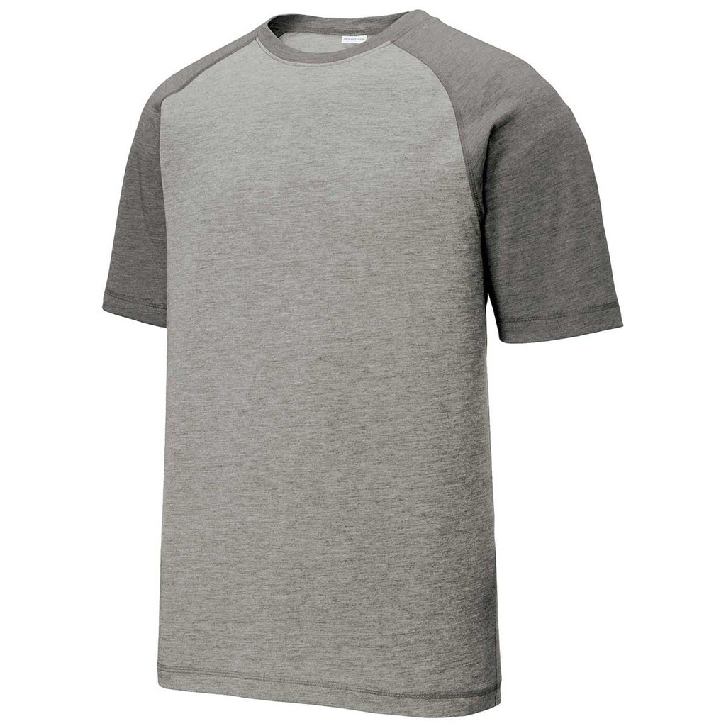 Sport-Tek Men's Dark Grey Heather/Light Grey Heather PosiCharge Tri-Blend Wicking Raglan Tee