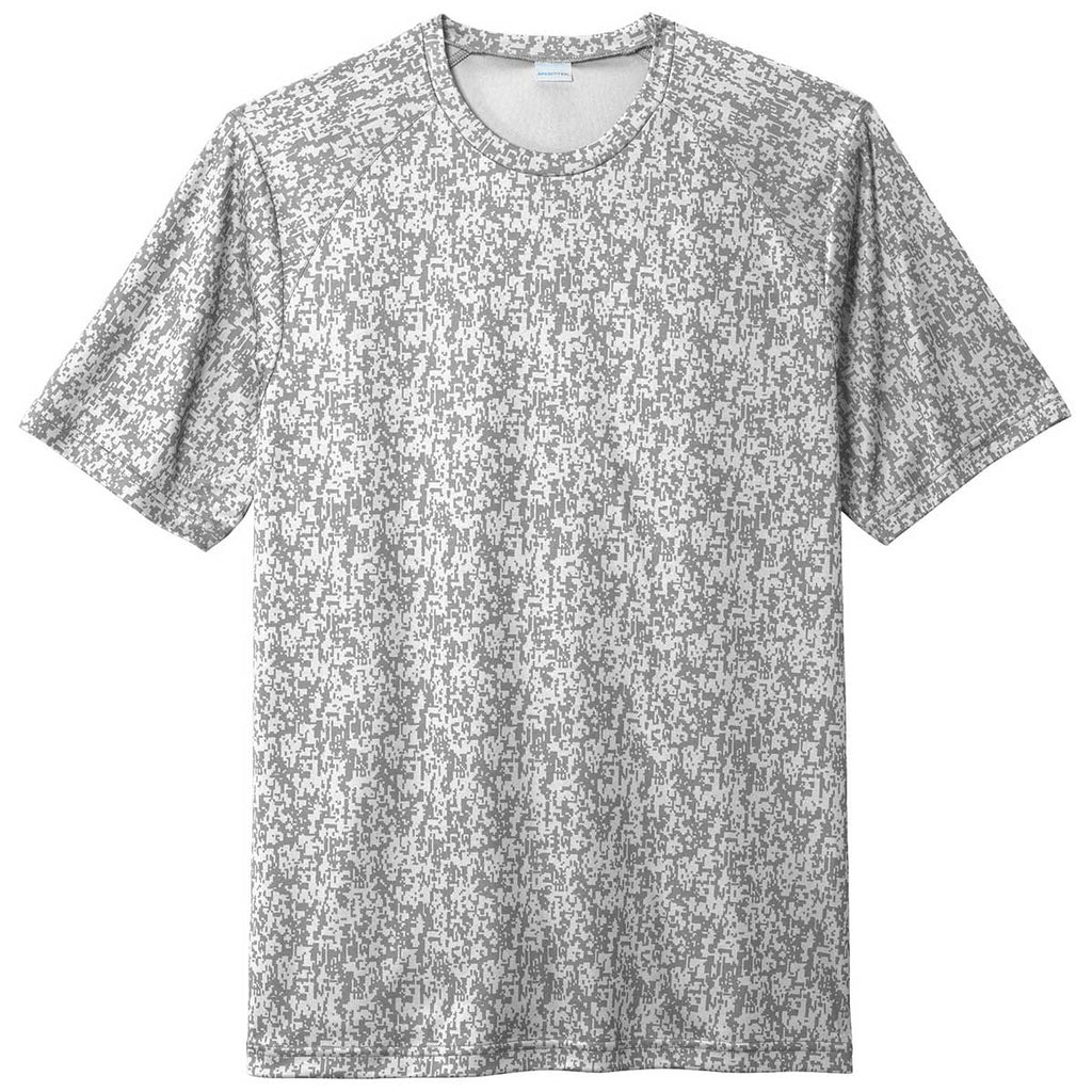 Mix camo and fashion with a custom heat transfer Sport-Tek Men's White PosiCharge Digi Camo Short Sleeve Tee. Take the classic tee to the next level with a custom logo design on one of many color and size options with this camo tee. Made of 100% polyester interlock with moisture wicking performance, this tee is ready to take you wherever you want to go. Perfect to use for team events or to give away as employee gifts for any occasion. Add a simple company logo and use as company uniforms that create a unique look everyone will love. Easily wear these tees on the weekends or when participating in team events.Highlights
