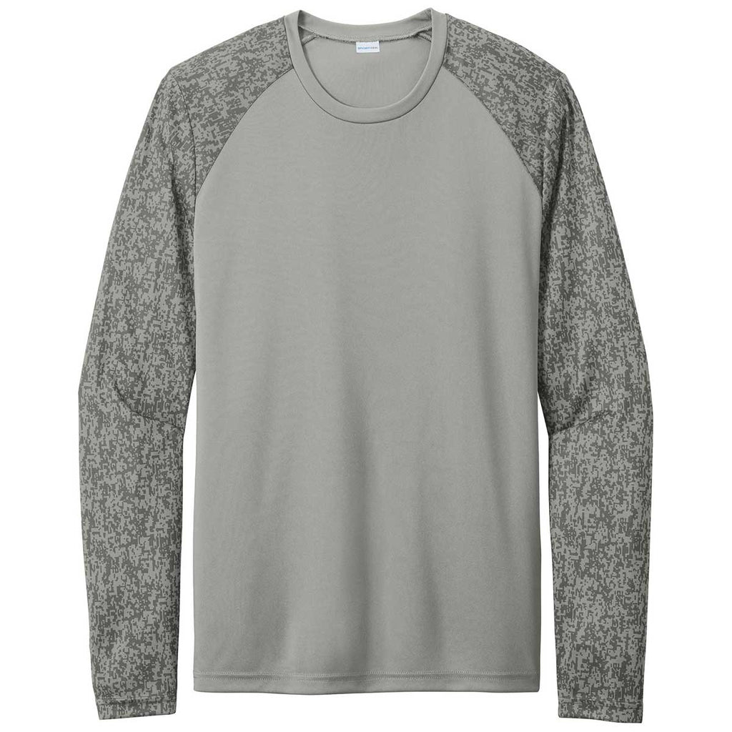 Sport-Tek Men's Grey Concrete PosiCharge Digi Camo Long Sleeve Tee