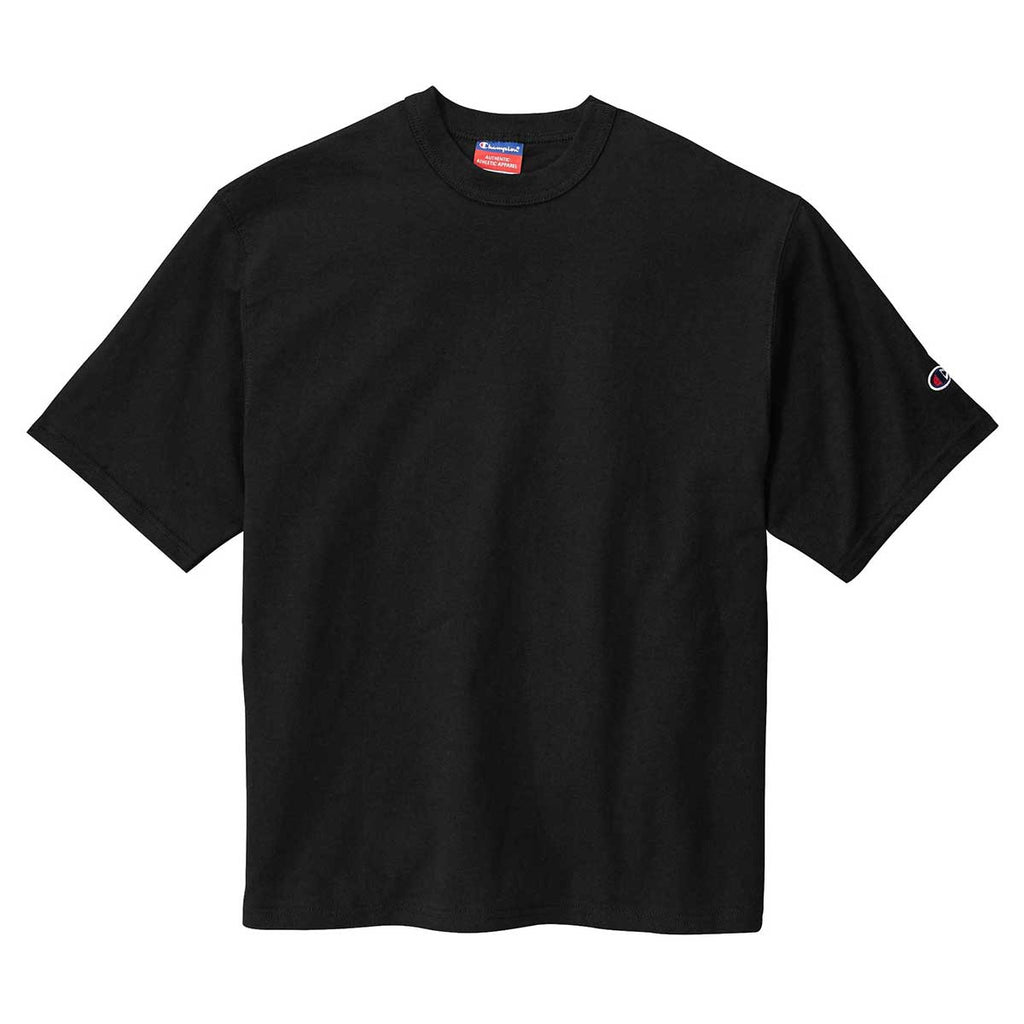 Keep it simple with a custom logo Champion Men's Black Heritage 7-oz Jersey Tee in a variety of colors and sizes. Made of cotton or a cotton rich blend depending on color, this tee is perfect as company uniforms or to use to support a team event. Your company logo will stand out on the cotton rich tee with bound, ribbed crewneck and deep armholes for comfort. Add a design that you create to give as unique employee gifts that will be well worn. A good tee is a staple in most wardrobes and the Champion tee is one of the best.