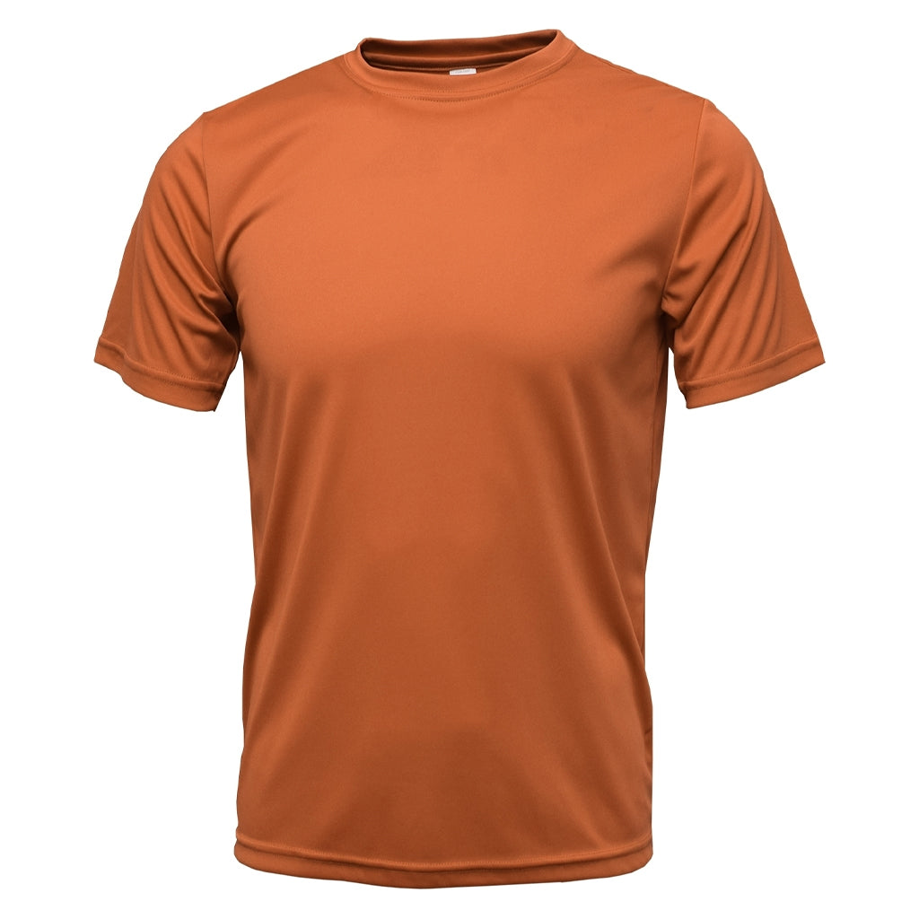 When you need a special color for the background of your customer logo, select the BAW Men's Texas Orange Xtreme Tek T-Shirt that is available in many shades! One of these will compliment your company or team's colors. This is a fabulous choice when you want people championing your product or services. Maybe you have a company store where employees can purchase tees in the color and size of their choice. Then again perhaps you are having a corporate event where you want to give out T-shirts to those who attend. Search no further! This crew neck polyester tee is a very wise choice.Corresponding Women's Style: BAW Women's Texas Orange Xtreme Tek T-Shirt