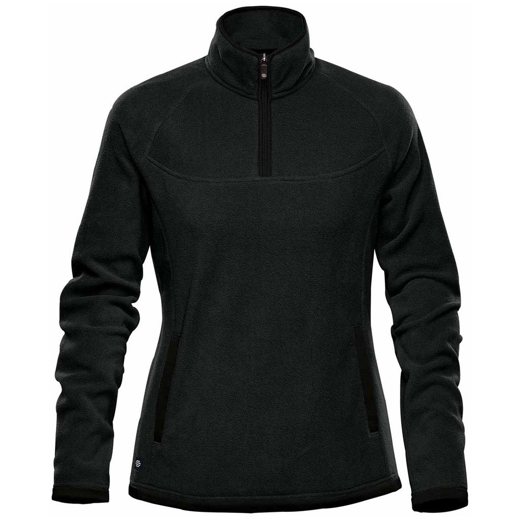 Climb the ladder and look good doing it with a custom embroidered Stormtech Women's Black Shasta Tech Fleece Quarter Zip. The classic styling of this quart zip does not detract from the beauty of the brushed tricot or the custom logo you can design and add. Being a pullover, it is easy to layer and the kangaroo pocket provides space for the small essentials. A cozy and comfortable fit are always important to the wearer and the Shasta is a must have as you take part in outdoor events and adventures. Take to the woods, the lake, the walkways, or the office in the custom Stormtech Shasta Tech fleece that can serve as anything from a boost to a personal wardrobe to a high-end gift for the holidays.Corresponding Men's Style: Stormtech Men's Black Shasta Tech Fleece Quarter Zip
