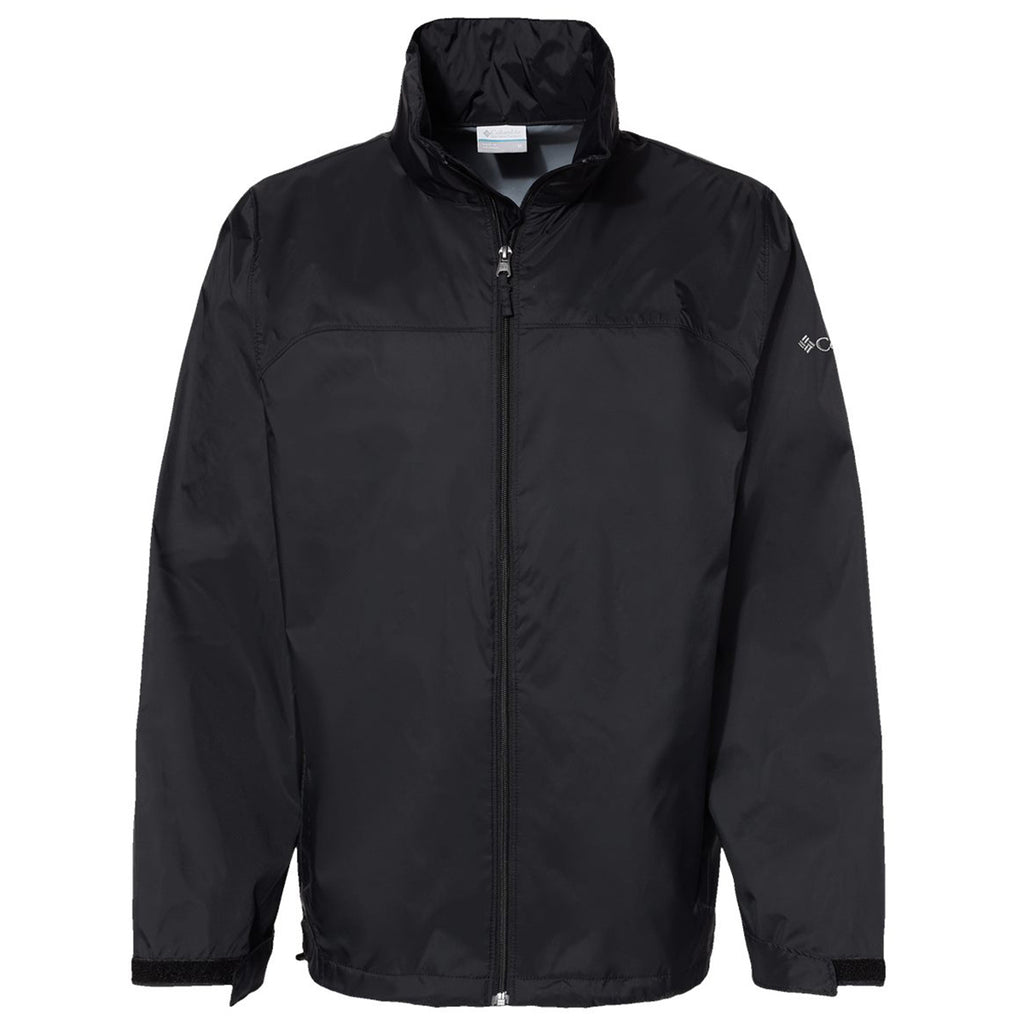 Choose a corporate design for the Columbia Men's Black Glennaker Lake Rain Jacket made of 100% nylon. The waterproof fabric is perfect for those rainy and overcast days with a stow-away hood and adjustable sleeve cuffs. Use as part of employee apparel for those who work in all types of weather or as promotional items at special events.This product cannot ship outside of the United States.