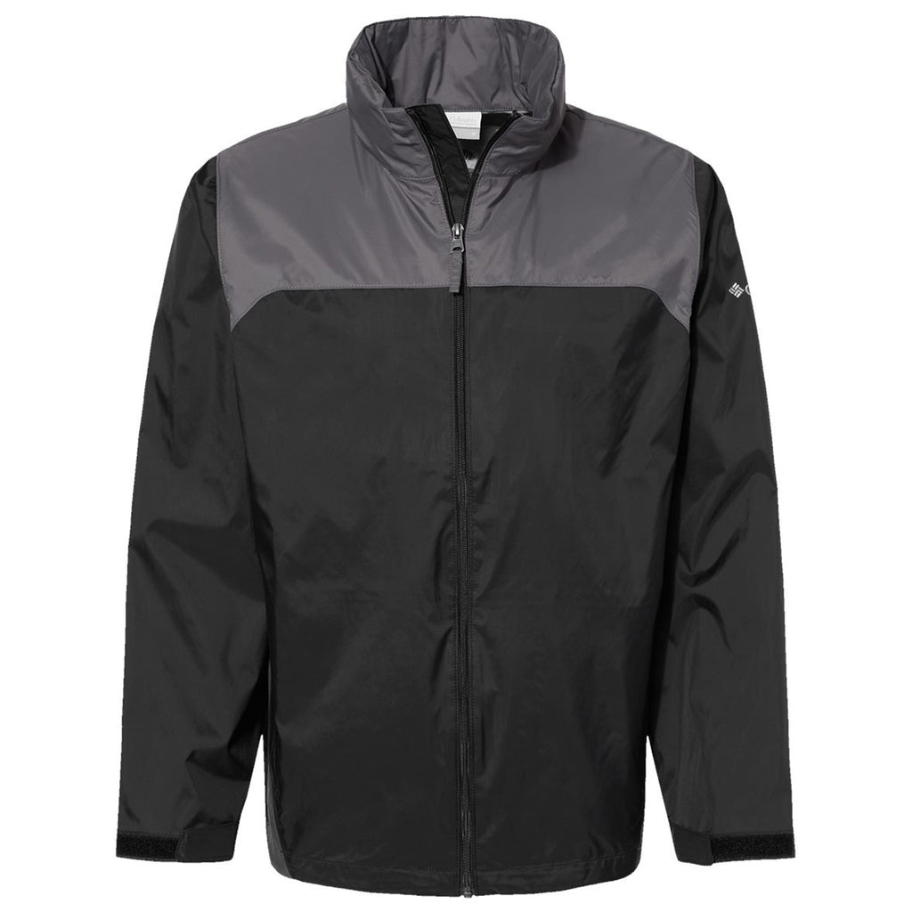 Choose a corporate design for the Columbia Men's Black/City Grey Glennaker Lake Rain Jacket made of 100% nylon. The waterproof fabric is perfect for those rainy and overcast days with a stow-away hood and adjustable sleeve cuffs. Use as part of employee apparel for those who work in all types of weather or as promotional items at special events.This product cannot ship outside of the United States.