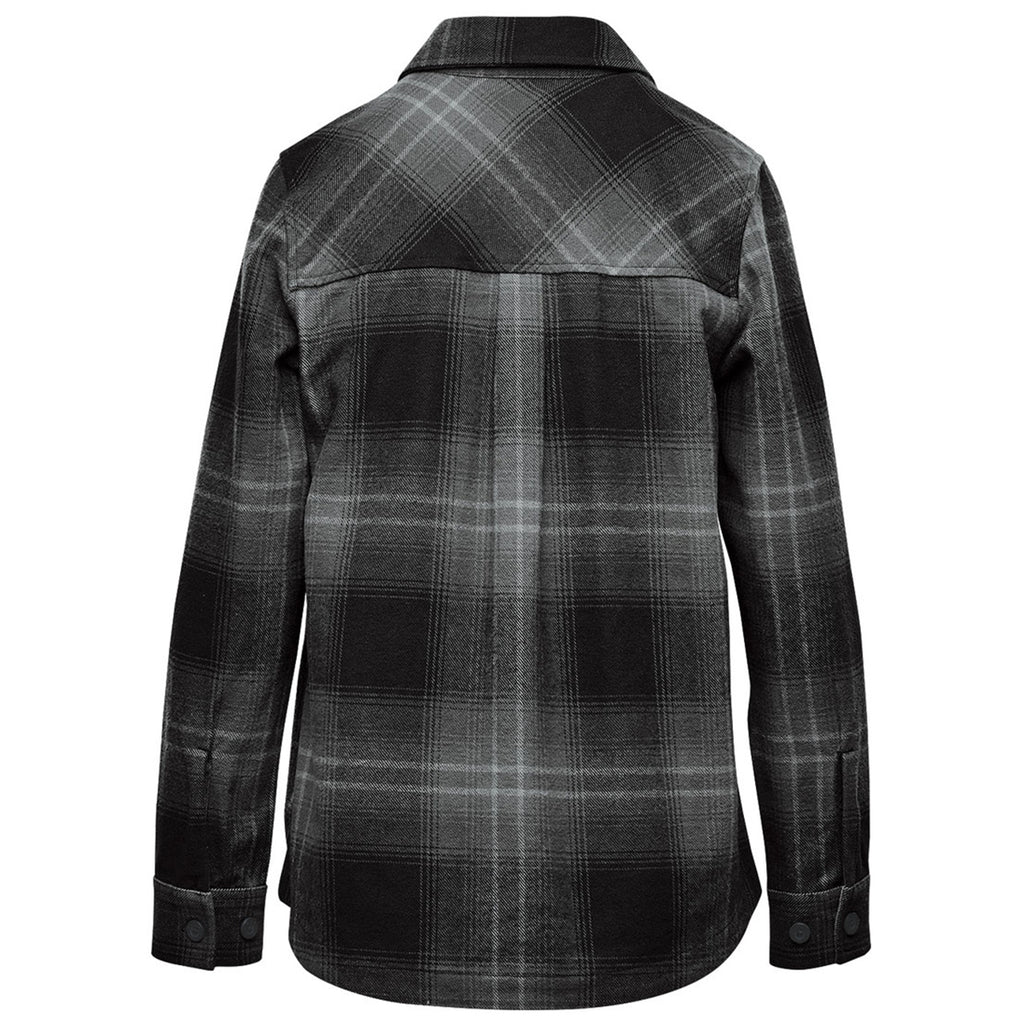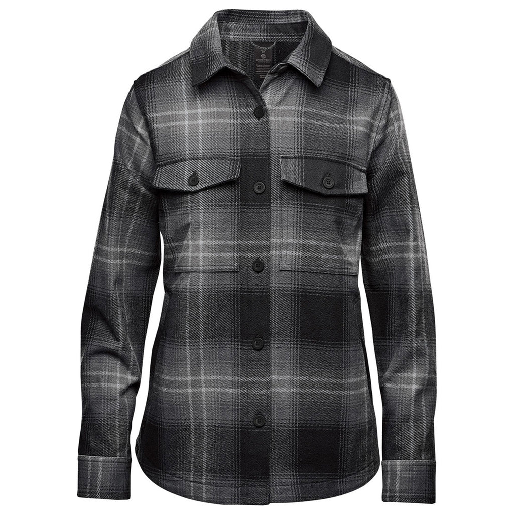Stormtech Women's Carbon/Black Highland Plaid Shacket with a custom logo is a fun take on a traditional flannel. The easy-to-wear and layer shacket is an urban outdoor staple whether heading to school, work, or on an adventure of your choosing. The durable buttons and soft feel make this shacket an instant favorite for everyone who wants to create their own style.