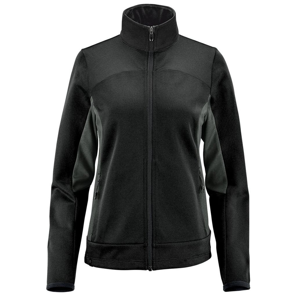 Enjoy the versatile custom Stormtech Women's Black/Graphite Appaloosa Knit Jacket for lightweight protection on cooler days. This jacket with contoured side panels creates an interesting silhouette that is also fashionable. The soft fleece will protect you while camping, hiking, commuting to work, or going out for the evening; the choice is yours.