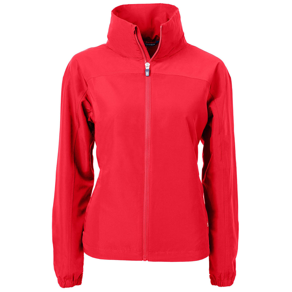 Cutter & Buck Women's Red Charter Eco Recycled Full Zip Jacket showcasing your custom logo will get you recognized at work or while out having fun. The full-front zip jacket is made of recycled materials with a water-resistant finish, a stowable hood, and an adjustable drawcord at the hem for an ideal fit. Great for outdoor adventures like camping, hiking, and backpacking. Order yours today.Corresponding Men's Style: Cutter & Buck Men's Red Charter Eco Recycled Full Zip Jacket