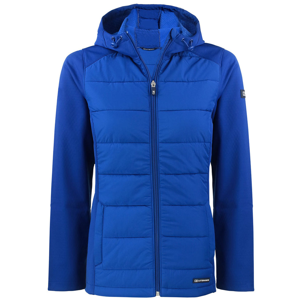 Cutter & Buck Women's Tour Blue Evoke Hybrid Eco Softshell Recycled Full Zip Hooded Jacket