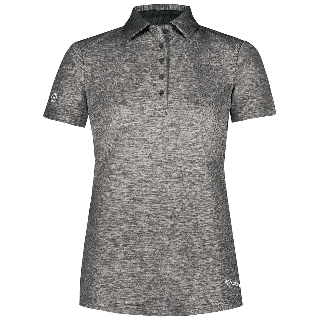 Holloway Women's Black Heather Electrify Coolcore Polo can be embroidered with a custom logo of your design. The short-sleeved polo offers a classic look with a longer back for modesty and all-day comfort. Easy to dress up for the office with a blazer or be more casual when worn alone with shorts, jeans, or slacks, this polo is an all-around garment that is as comfortable in the boardroom as the clubhouse. Place an order today.Corresponding Men's Style: Holloway Men's Black Heather Electrify Coolcore Polo