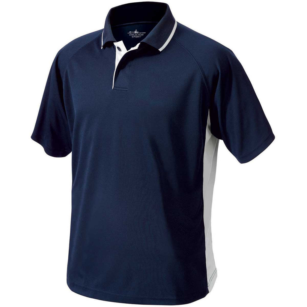 Charles River Men's Navy/White Color Blocked Wicking Polo