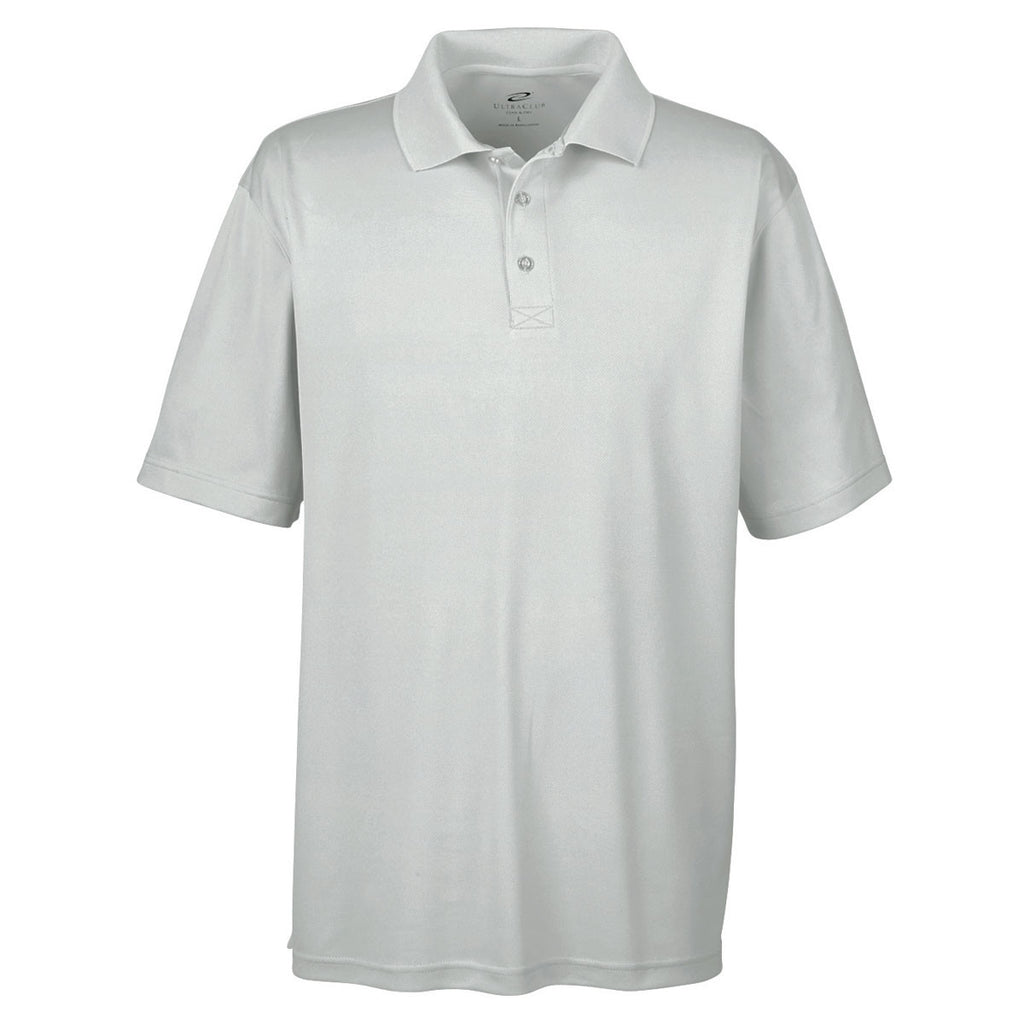 Hemmed sleeves and the drop tail separate the UltraClub Men's Grey Cool & Dry Sport Polo from the polo pretenders. The chic design elements make the sport polo perfect for entertaining friends, as well as wearing out for a night on the town. Enjoy a relaxed fit that keeps you feeling great all night long. The knit collar and three-button placket complete the design elements for the elegant polo. Rugged 100% polyester mesh circulates air to keep the upper body dry. Moisture wicking technology quickly absorbs and removes sweat to cool the skin. Attach your corporate logo to gain more exposure for your company in the community.Corresponding Women's Style: UltraClub Women's Grey Cool & Dry Sport Polo