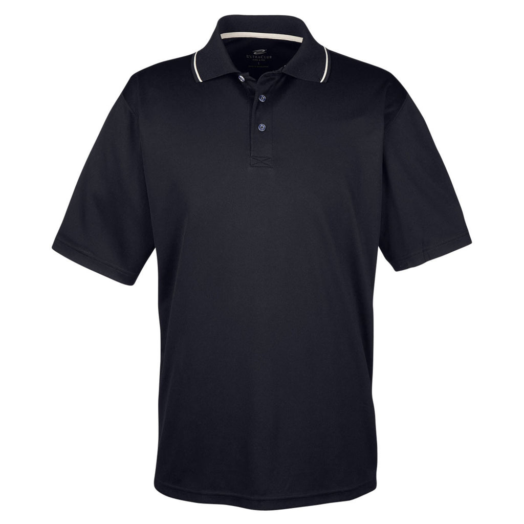 UltraClub Men's Black/Stone Cool & Dry Sport Two-Tone Polo