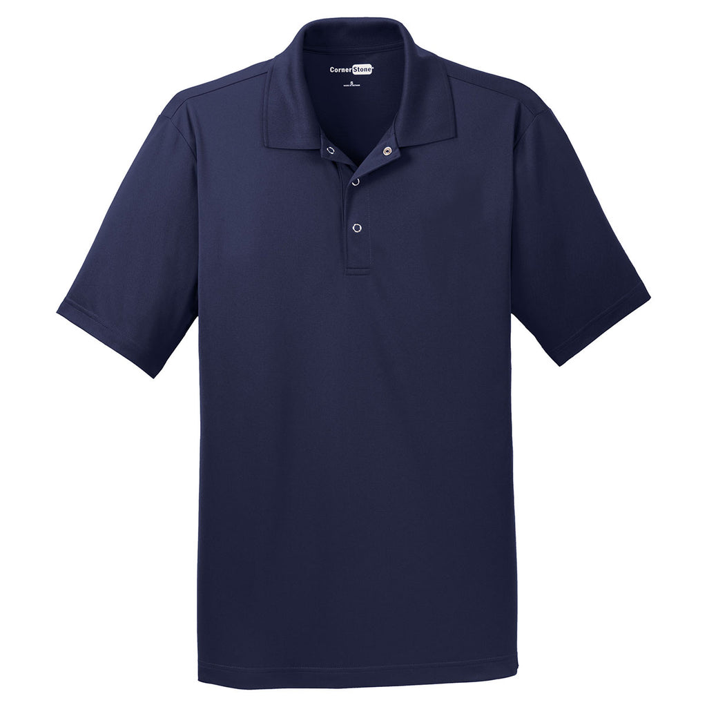 The CornerStone Men's True Navy Micropique Gripper Polo makes the perfect food and beverage workwear shirt. From quick service restaurants to upscale dining venues, the highly durable shirt withstands all of the stains thrown its way during a busy dinner shift. Moisture-wicking and snag-resistant 100% polyester helps the polo stand up to every type of abuse inflicted on it. Side vents and set-in, open hem seams enhance the breathability of the polo. Cooks can wear the button-free shirt on a steamy hot kitchen line and feel comfortable due to the materials removing perspiration quickly to cool the skin. The sleek design adds panache and maybe a bounce in the step of your hospitality driven staff.Corresponding Men's Style: CornerStone Women's True Navy Micropique Gripper Polo