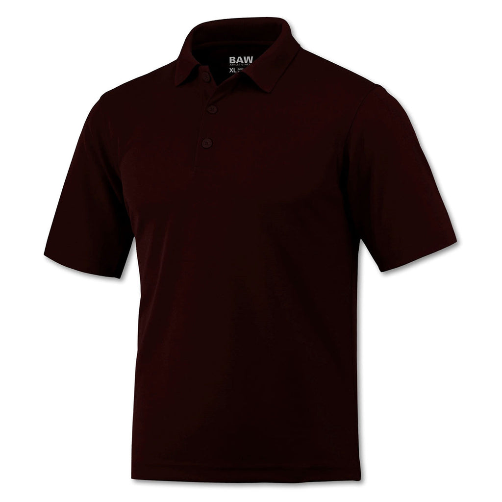 When you want a quality polo to give as incentives or to stock your wearables inventory choose one that is cool and comfortable. The BAW Men's Maroon Solid Cool Tek Polo is made from polyester Cool Tek and the material is moisture managing and feels great against the body. Not only does it feel good, your customer logo will look prominent on the front. Anyone receiving this shirt will feel proud that your name is on the quality polo. Everything about it says excellence. From the color choices to the sizes from S to 5X, this is a garment that will be worn quite often.Corresponding Women's Style: BAW Women's Maroon Solid Cool Tek Polo