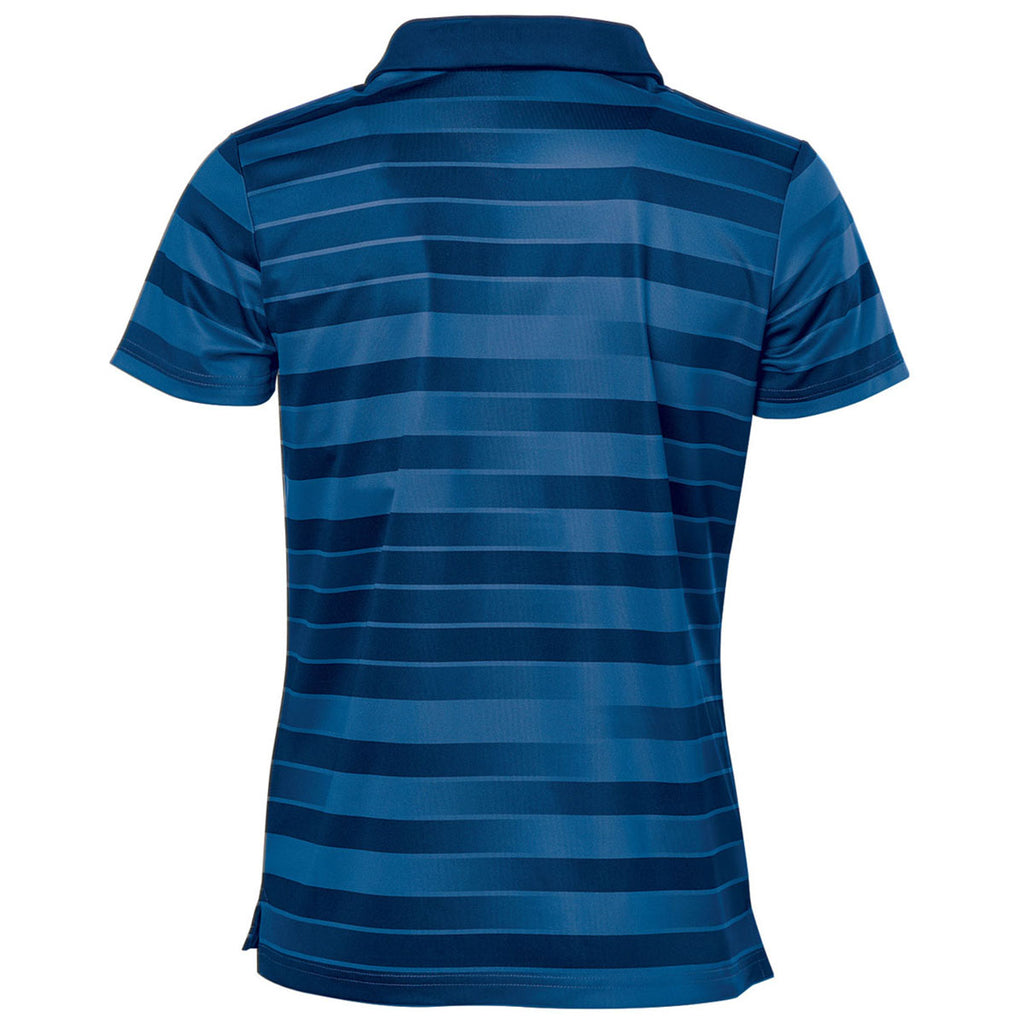 Outfit your team to perfection by adding your company's custom logo or design to the Stormtech Women's Classic Blue Sienna Short Sleeve Polo. Covered in a horizontal gradient stripe pattern, this professional polo features H2X-DRY moisture management technology and UPF sun protection, making it perfect for athletes and anyone with an on-the-go lifestyle.