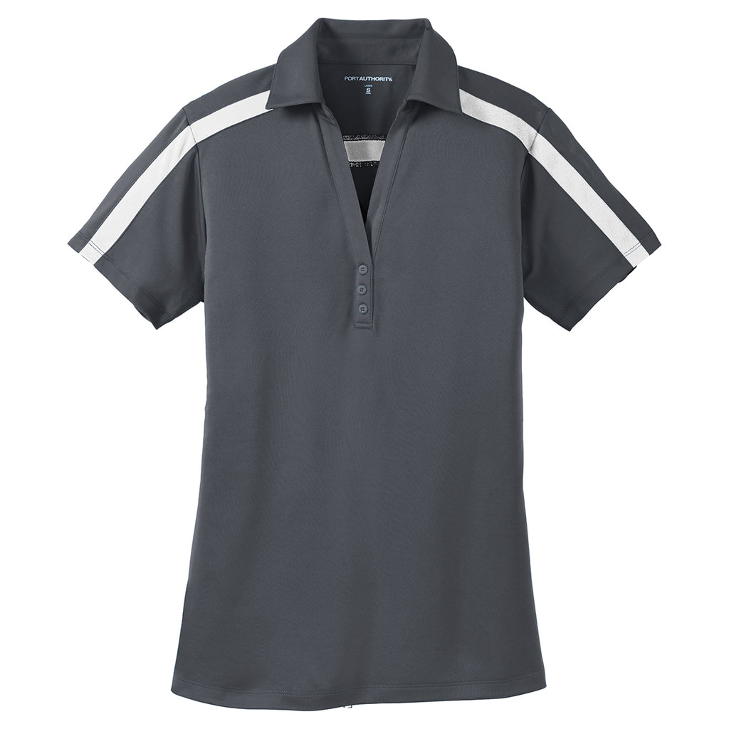 Port Authority Women's Steel Grey/White Silk Touch Performance Colorblock Stripe Polo