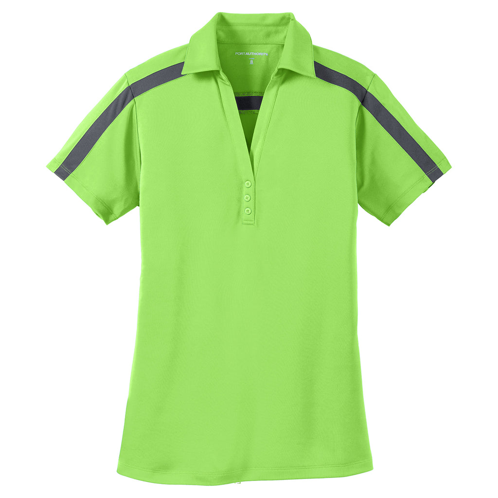 Port Authority Women's Lime/Steel Grey Silk Touch Performance Colorblock Stripe Polo