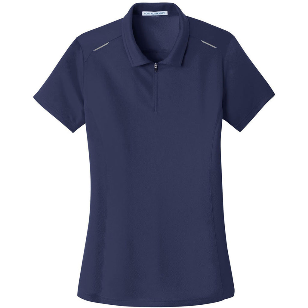 Port Authority Women's True Navy Pinpoint Mesh Zip Polo