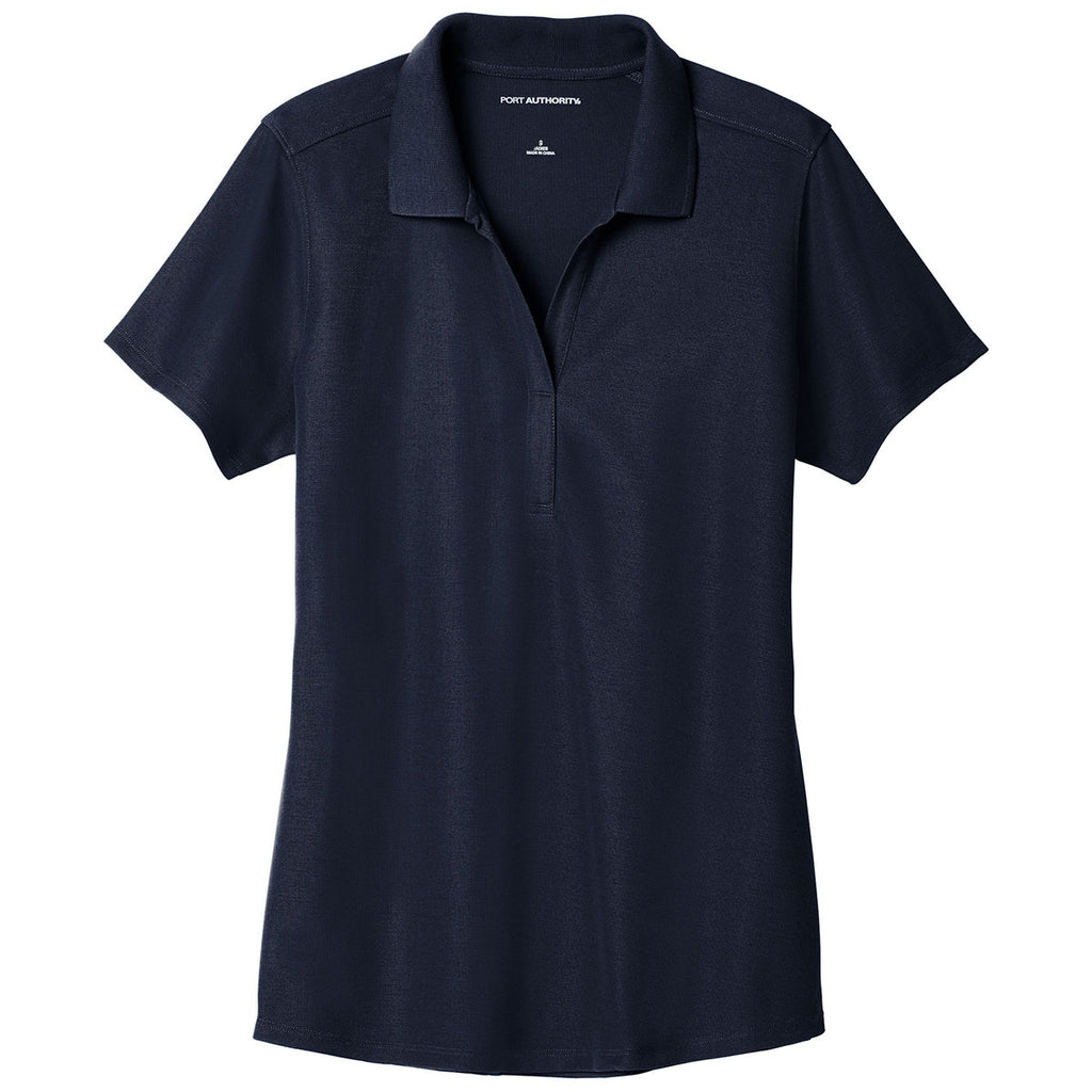 Select the ultimate employee uniform for the women members of your dedicated team by ordering the custom logoed Port Authority Women's Navy EZPerformance Pique Polo. Highly durable 100% spun polyester pique fabric resists the types of rips and tears that diminish the quality of other styles of polos. Wear the multi-purpose polo to work and keep it on after the workday ends when you kick back at your favorite restaurant. The sleek Y-neck placket and open hem sleeves put the polo on the highest fashion pedestal. Add a custom logo on the embroidery area to reach more potential customers at industry trade shows.Corresponding Men's Style: Port Authority Men's Navy EZPerformance Pique Polo