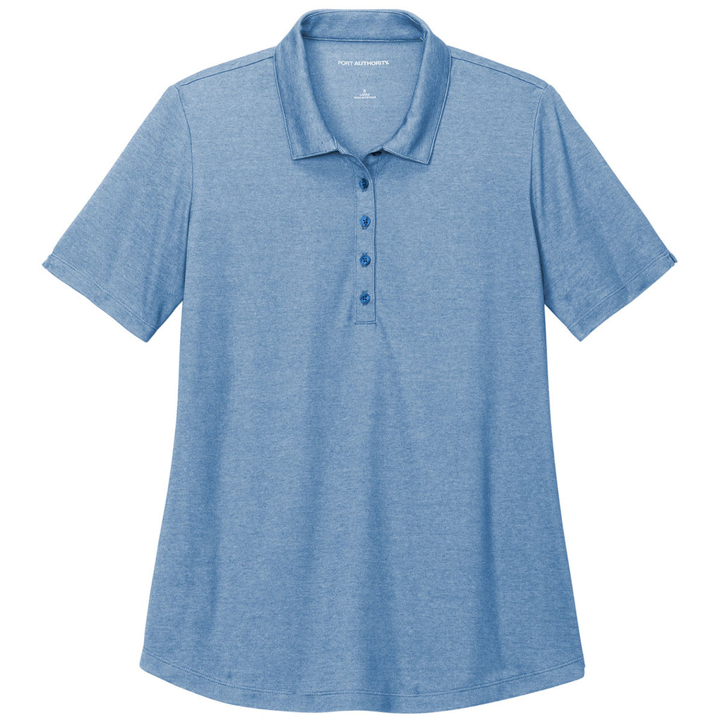 Port Authority Women's Aegean Blue Heather Fine Pique Blend Polo