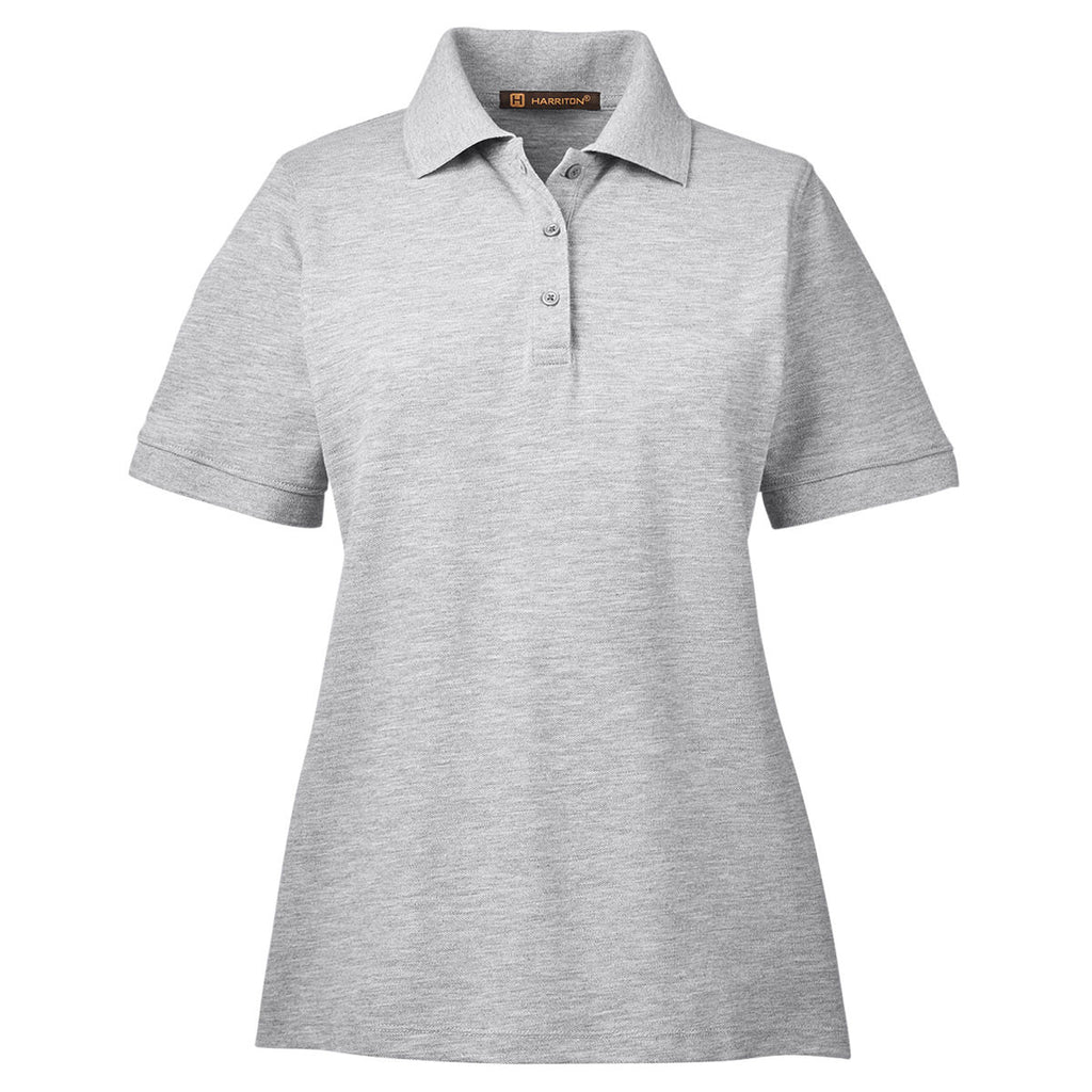 With a softly shaped design to create a more flattering feminine look, the Harriton Women's Grey Heather 5.6 oz. Easy Blend Polo is sure to turn heads at your next business seminar. The flat-knit collar and cuffs complement the three-button placket to produce a stylish polo to wear at the office, as well as outdoors working on home improvement projects. Blended cotton and polyester never wrinkles to keep you looking professional throughout the day. The silky soft fabrication reduces shrinkage to ensure maximum comfort for years to come. Attach a custom logo that attracts the interest of customer prospects.Corresponding Men's Style: Harriton Men's Grey Heather 5.6 oz. Easy Blend Polo