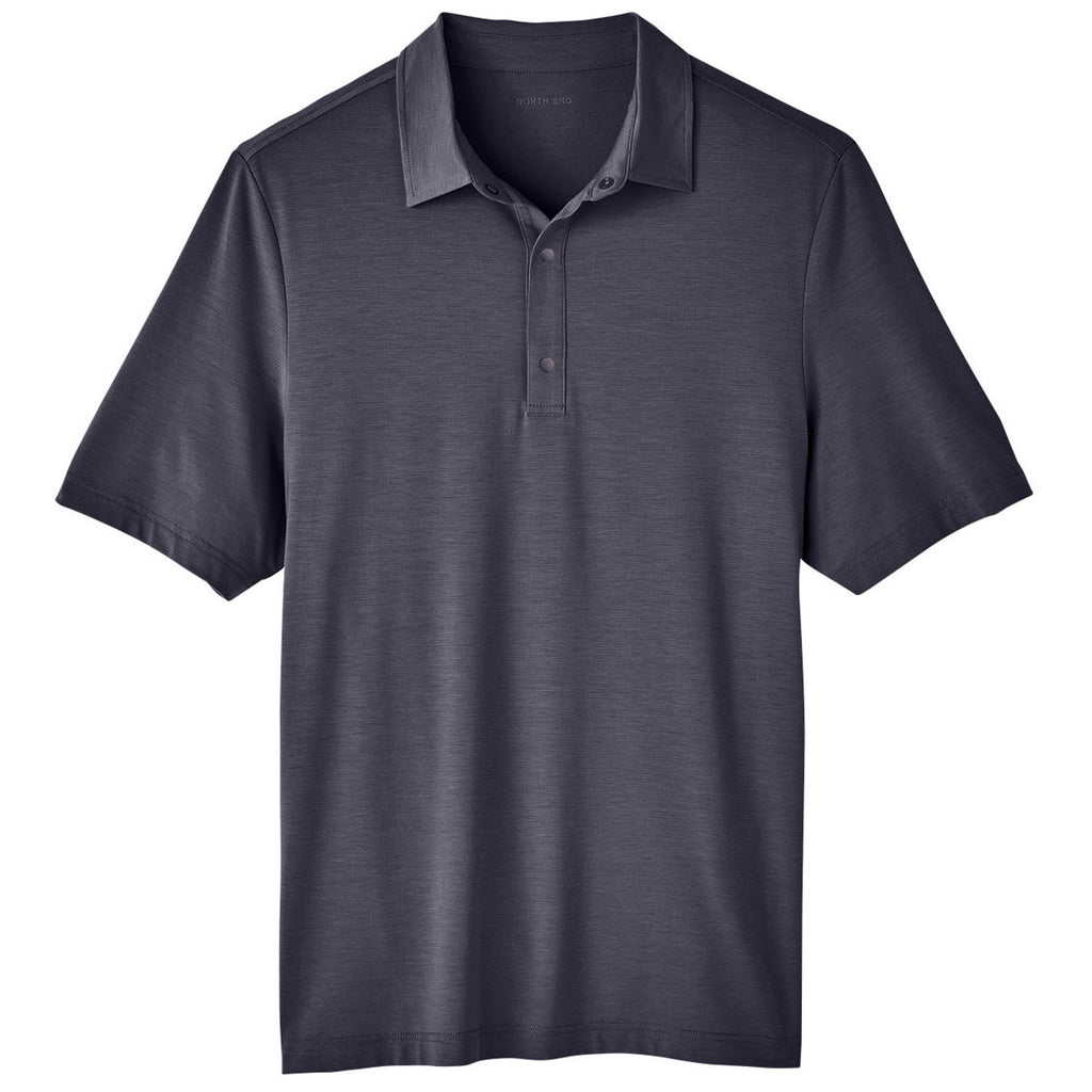 Add embroidery to the North End Men's Carbon Jaq Snap-Up Stretch Performance Polo to create employee apparel that will look and feel great throughout the day. Made of a polyester, lyocell, spandex jersey with stretch performance and side vents, this active fit polo has moisture wicking and antimicrobial properties. Add a company logo to use as part of a uniform or your custom design to create a line of fun, yet functional looks. The snap closure makes this an easy to wear piece that can be layered if desired.Corresponding Women's Style: North End Women's Carbon Jaq Snap-Up Stretch Performance Polo