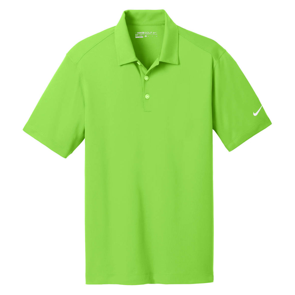 Nike Golf has fast become the quintessential name in golf polos, and for good reason: they're simple, elegant, and comfortable in all manners of weather. The Nike Men's Green Dri-FIT Short Sleeve Vertical Mesh Polo is no exception. The 4.4-ounce 100% polyester fabric is soft and lightweight without sacrificing durability. The self-fabric collar keeps the style consistent. And the Dri-FIT moisture management technology will keep you feeling fresh even when you're on the eighteenth hole in the late afternoon. Add your own company's logo to the front of this beautiful polo and you'll even be able to adopt it to your own brand.