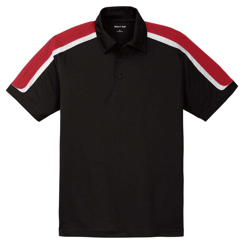 Sport-Tek Men's Black/True Red/White Tricolor Shoulder Micropique Sport-Wick Polo