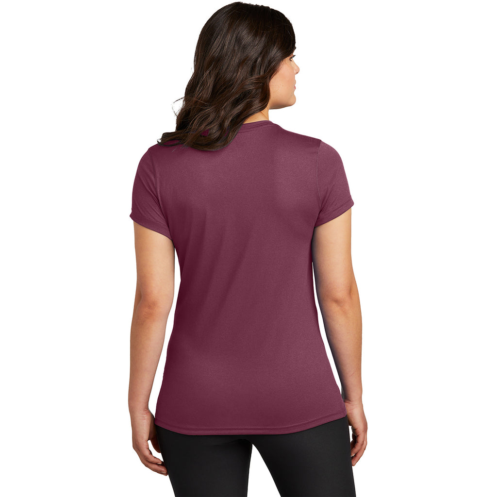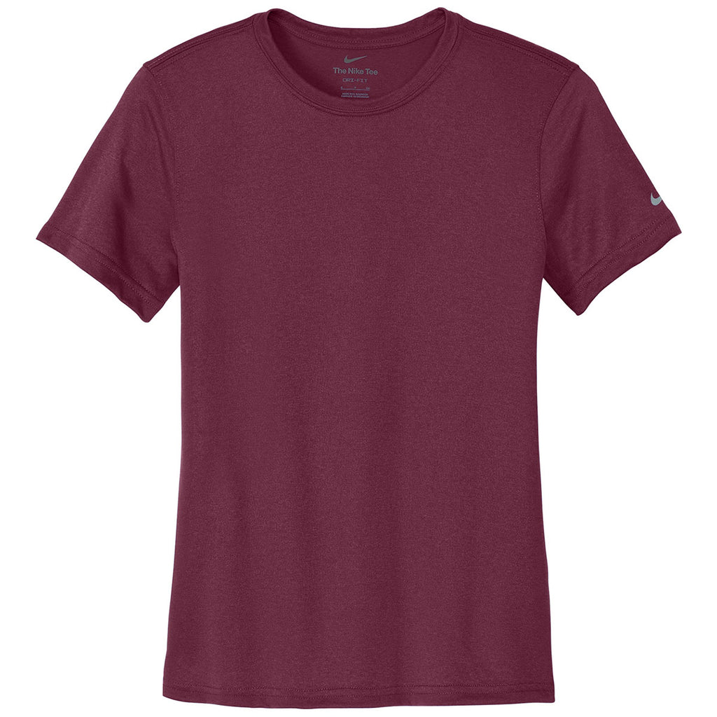 Nike Women's Deep Maroon Swoosh Sleeve rLegend Tee with a custom logo is the stuff legends are made of. This sustainable material with Dri-FIT technology means you will gain peak performance with a lower environmental impact. Great for employees who have to work their hardest each day or your team that needs to be on top of their game. Place an order today.