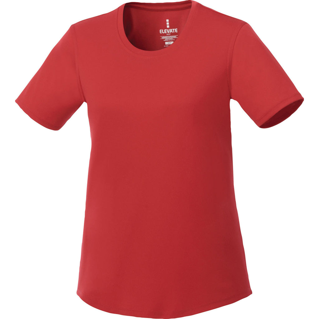 If you could build the ideal T-shirt for your next promotion, what elements would you include? You would probably look for durability, which means not only great fabric construction but attention to detail at the seams. And you would look for comfort, which is all about the quality of the fabric itself. That's not just icing on the cake; that's just as important as anything else. Of course, you can make it easy on yourself and just use this Elevate Women's Team Red Omi Short Sleeve Tech T-Shirt-then you'll have all of the quality with none of the hypotheticals. Just add on a custom corporate logo to brand this shirt as a gift, promotional item, and more.Corresponding Men's Style: Elevate Men's Team Red Omi Short Sleeve Tech T-Shirt