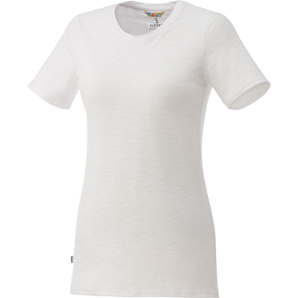 It's not enough to put your brand out there and hope that people notice it. You have to draw attention. That starts with adding on your logo to a quality piece. And why not a T-shirt like the Elevate Women's White Sarek Short Sleeve T-Shirt you see here? It features durability and strength in the fabric content itself. And it's not just good at attractiveness from afar-it holds up to close scrutiny. Just add your logo to this piece and consider your latest branding goal a mission accomplished.Corresponding Men's Style: Elevate Men's White Sarek Short Sleeve T-Shirt
