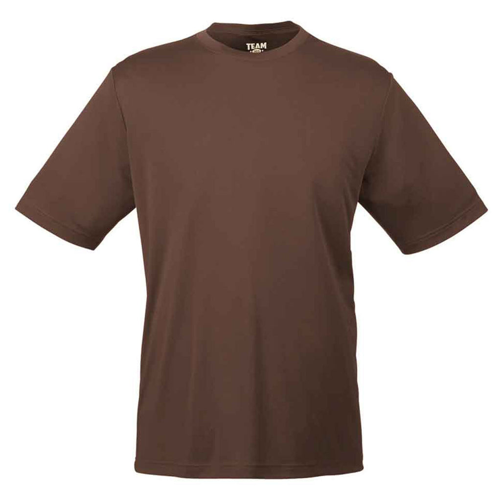 One-hundred percent polyester interlock makes the Team 365 Men's Sport Dark Brown Zone Performance T-Shirt the go to shirt for serious athletes. Ultraviolet ray protection performance prevents skin damage caused by prolonged exposure to the sun. The snug, yet comfortable athletic fit gives you a leg up on the competition. Bright cationic dyes create a stunning visual appearance that leaves a long lasting impression on the other team. Add a custom logo to the large imprint area to bolster the image of your company at corporate sponsored sporting events. Logoed corporate apparel makes ideal gifts to reward the hard working members of your team.Corresponding Women's Style: Team 365 Women's Sport Dark Brown Zone Performance T-Shirt