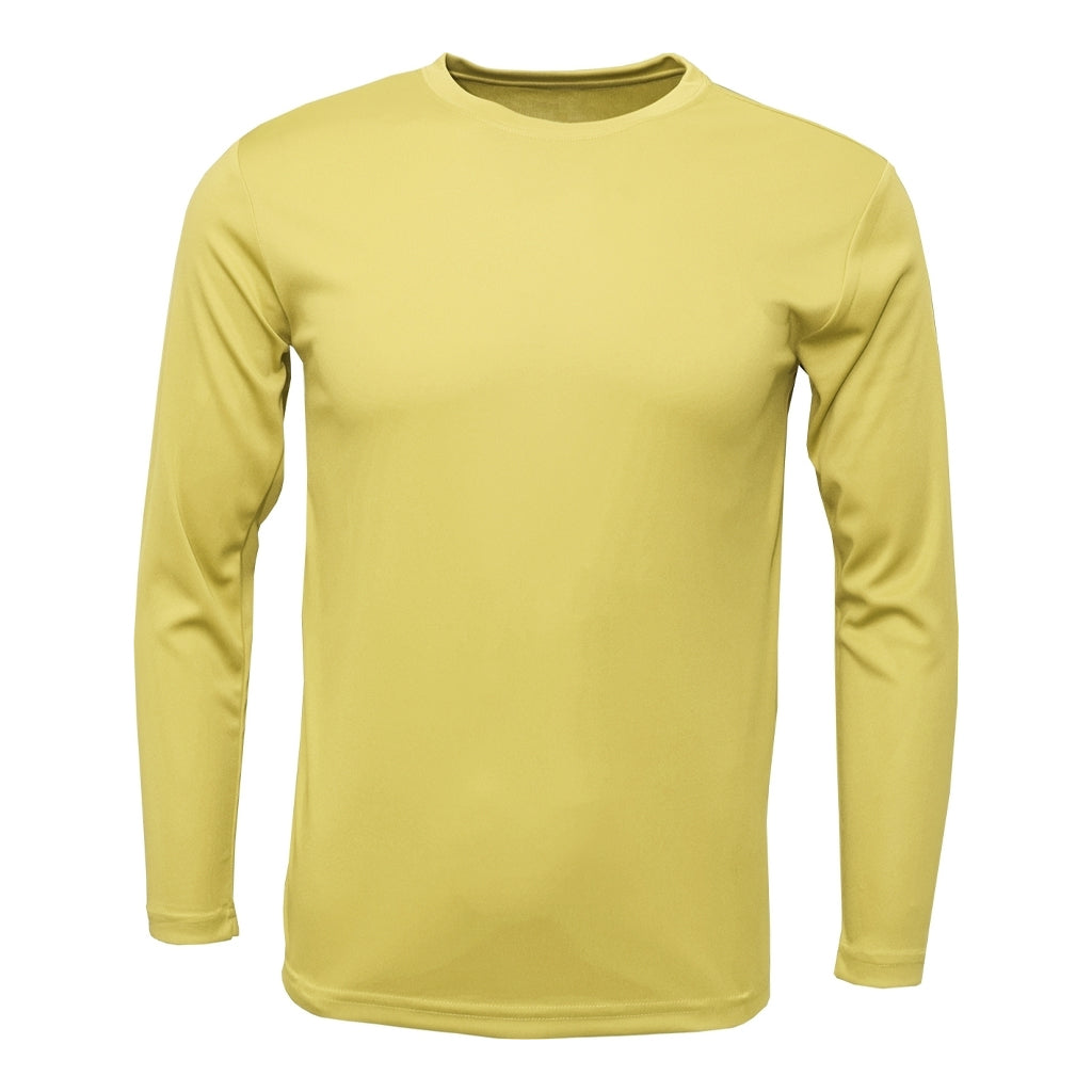 Not only will the BAW Men's Vegas Gold Xtreme Tek Long Sleeve Shirt fit into your promotional plans, it will fit the men to a "T" . Your custom logo will stand out on any one of the available colors from brown to bright green. It has a crew neck and double needle hems. The breathable polyester fits like a glove without sagging and bagging. It is ideal for corporate sponsorships, company events and give-away incentives. This is a handsome shirt that will be enhanced with your custom logo. Those who see someone wearing it will be sure to ask where it was received, and the wearer only has to point to his chest.Corresponding Women's Style: BAW Women's Vegas Gold Xtreme Tek Long Sleeve Shirt