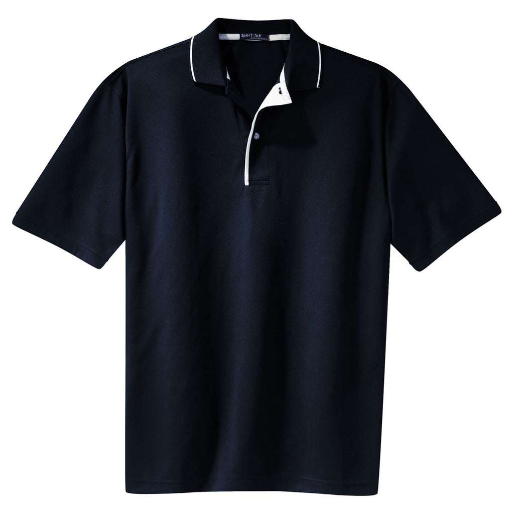 Sport-Tek Men's Navy/White Dri-Mesh Polo with Tipped Collar and Piping