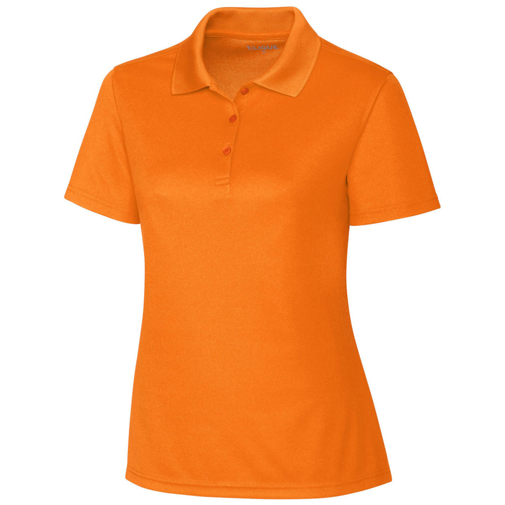 Dazzle your golf partners not only with your game, but also your fine taste in company apparel by wearing the Clique Women's Hi-Vis Orange Spin Pique Polo. Versatile enough to wear at work and after work at your favorite restaurant, the stylish polo includes a large embroidery area for attaching your corporate logo. With a company logo, you stir interest in your products and services at professional networking events. The 100% spin-dye polyester pique polo withstands the punishment delivered by active lifestyles. Forward shoulders complement the rib knit collar to define what elegant, yet functional fashion should look like.Corresponding Men's Style: Clique Men's Hi-Vis Orange Spin Pique Polo