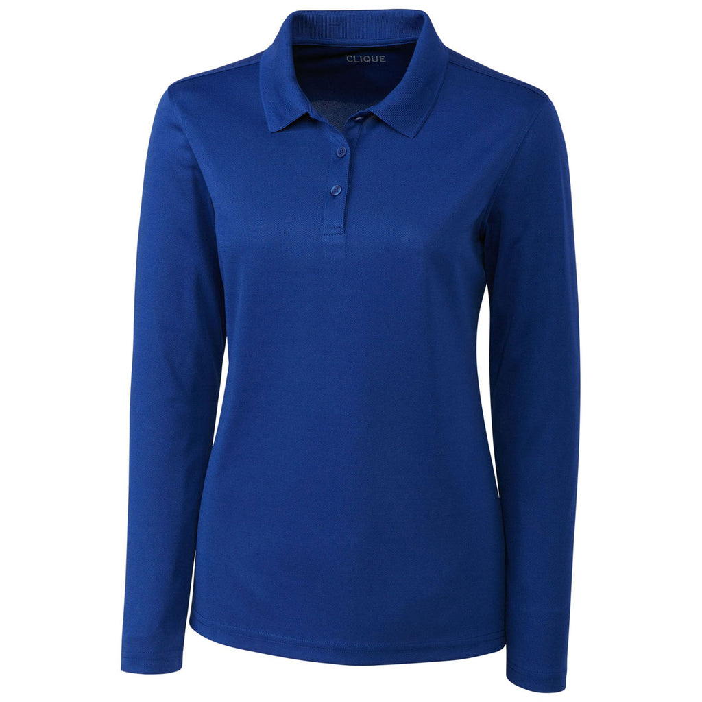 Usher in a new era of sleek women's apparel by ordering the Clique Women's Tour Blue Long Sleeve Spin Pique Polo. The long sleeve shirt is perfect as the outer layer of a golf fashion ensemble. You can also wear the body heat trapping pique polo under a plush sweater. Open the rib knit collar to create an upscale look. Enjoy a long lasting polo that contains 100% rip and tear resistant spin-dyed polyester pique. The full taped neck seam prevents the fabric from fraying because of frequent use. Attach a custom logo on the large area where you tore off the label.Corresponding Men's Style: Clique Men's Tour Blue Long Sleeve Spin Pique Polo
