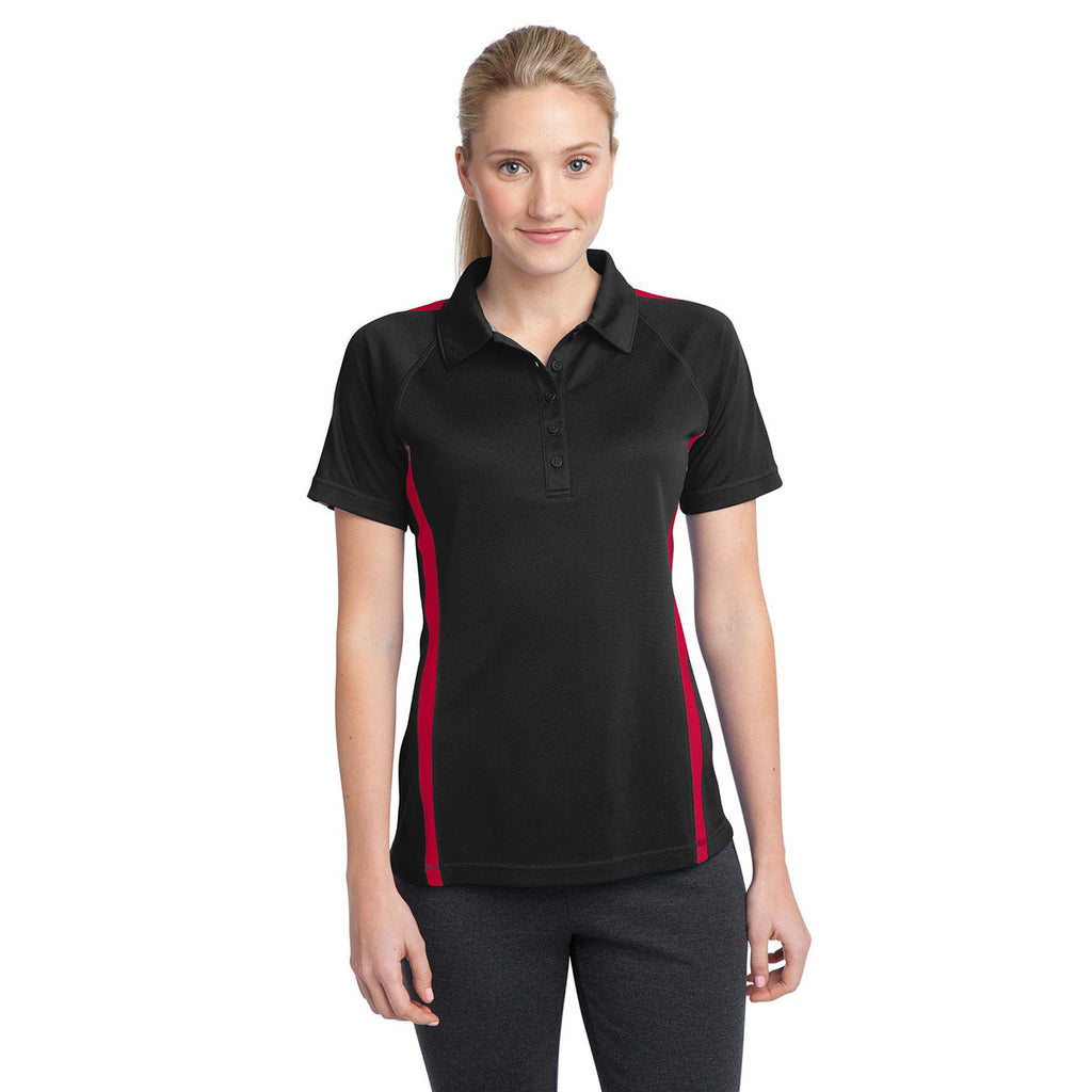 Sport-Tek Women's Black/Red PosiCharge Micro-Mesh Colorblock Polo
