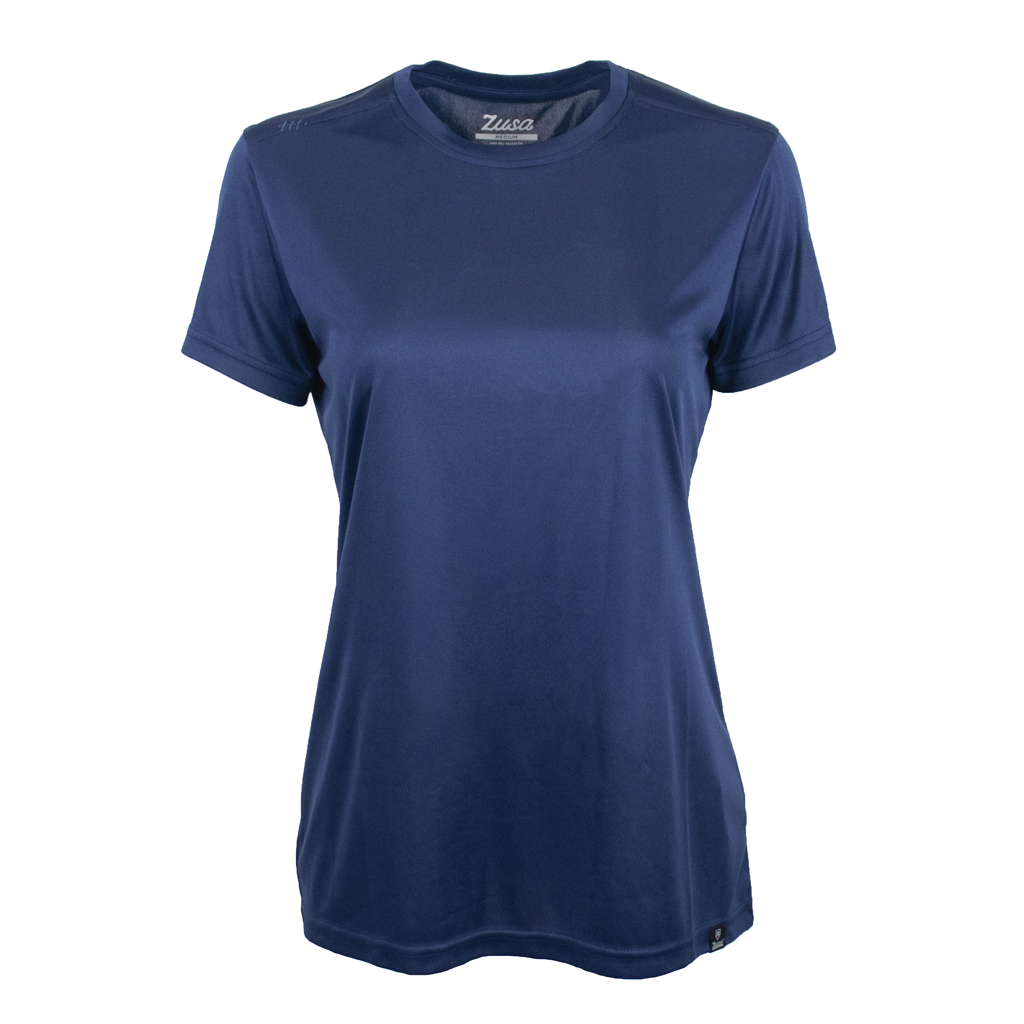 The Zusa Breezy Tee 2.0 for women is a performance t-shirt that not only looks great but also helps the environment. Made with 100% recycled materials, including 4 recycled water bottles, this tee is perfect for eco-friendly companies and progressive teams. The moisture-wicking fabric of the Zusa Breezy 2.0 tee will keep you cool and dry, while the UV protection (UPF 35) will shield you from the sun's harmful rays. With an easy-care design, this tee is perfect for those on the go. The lightweight and breathable material makes it ideal for all your outdoor