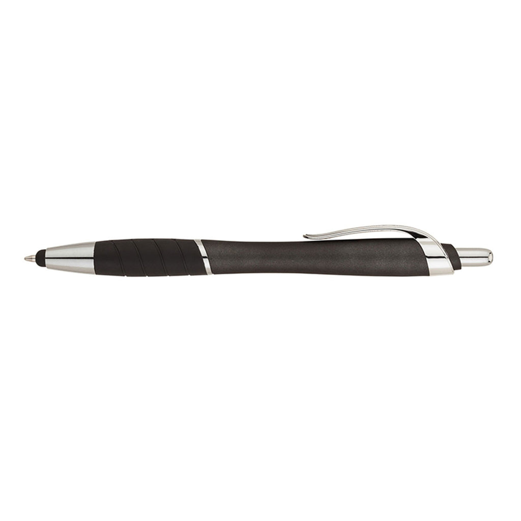 Distinguished by a metallic colored barrel and textured rubber grip to provide style and comfort for everyday use. It also has a conductive stylus you can use on your touch-screen devices. Impress your employees and clients by customized Valumark Wave Deluxe Black Pens + Stylus imprinted with your company logo.