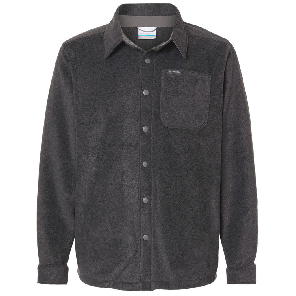 Columbia Men's Charcoal Grey Heather Steens Mountain Solid Shirt Jacket blends the softness of fleece with a shirt-style silhouette, making it suitable for embroidery or custom branding. Its warm construction makes it great for transitional weather, while the button-front design delivers everyday versatility. A practical pick for staff apparel, outdoor programs, or retail-ready merchandise.This product can only ship within the United States and Canada.