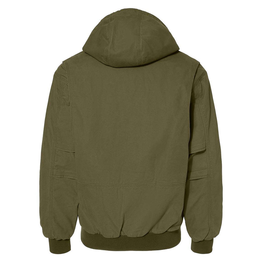 Choose a custom design for the Dri Duck Men's Olive Laramie Power Move Jacket to create employee apparel that commands respect. This cotton Canyon Cloth canvas is heavier for outdoor wear with a brushed tricot upper body panel and quilted nylon lower body panel with polyfill. Flex Action means you can keep working while wearing without restricting mobility. A drawstring hood keeps you further protected whether hiking, working the high lines, or doing general outdoor tasks.