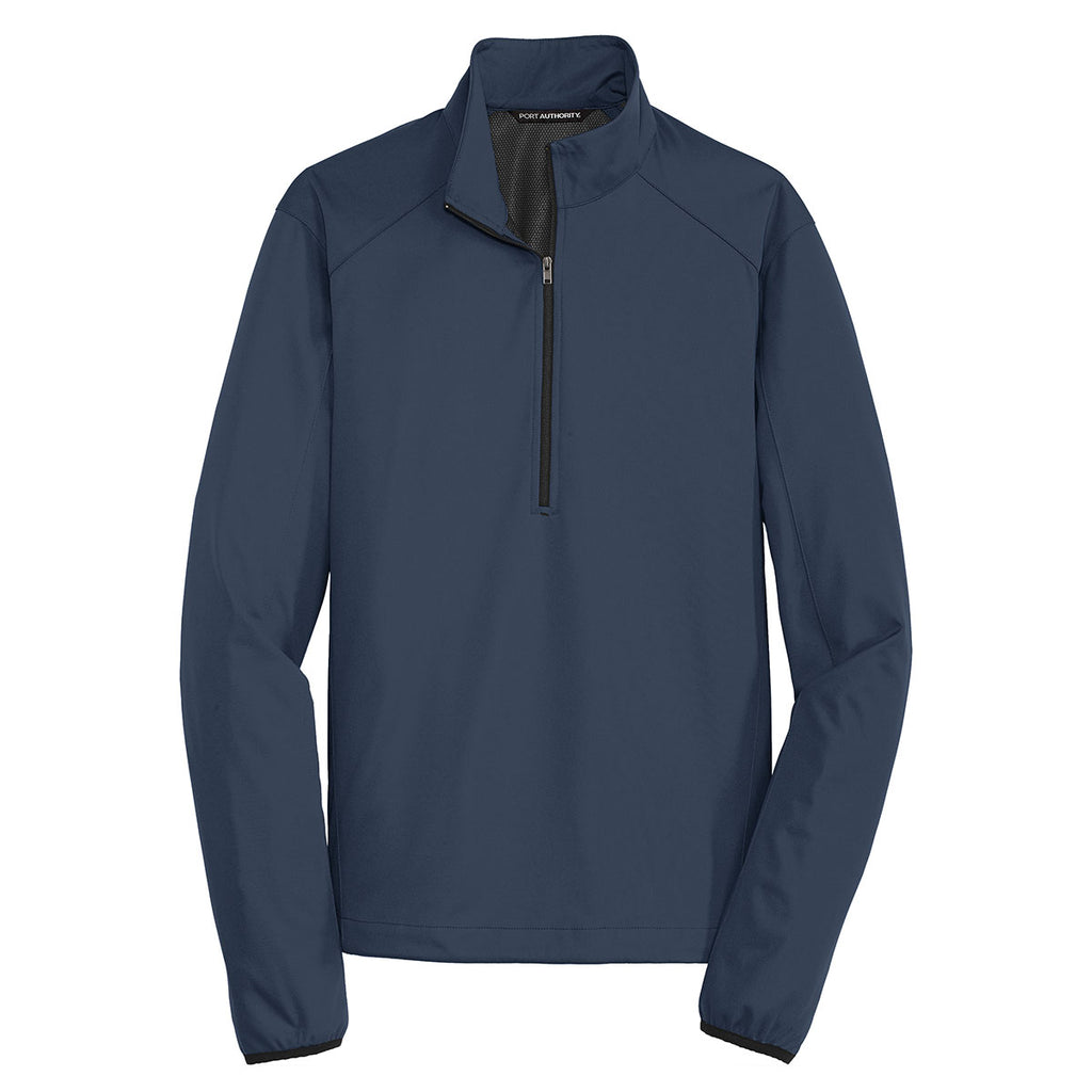 Have you ever worn a jacket that made you feel rigid? You couldn't wear the jacket for performing home improvement projects, because the jacket stiffened every time you needed to reach for something or wrap your arms around an object. The versatile Port Authority Men's Dress Blue Navy Active 1/2-Zip Soft Shell Jacket allows plenty of stretch to maximize movements. It looks professional for work and suave for attending social events. Water resistant polyester keeps you dry during a sudden downpour. The highly breathable interior mesh liner circulates air to eliminate sweat. Add your company logo to the jacket for promoting your brand at professional networking events.Highlights