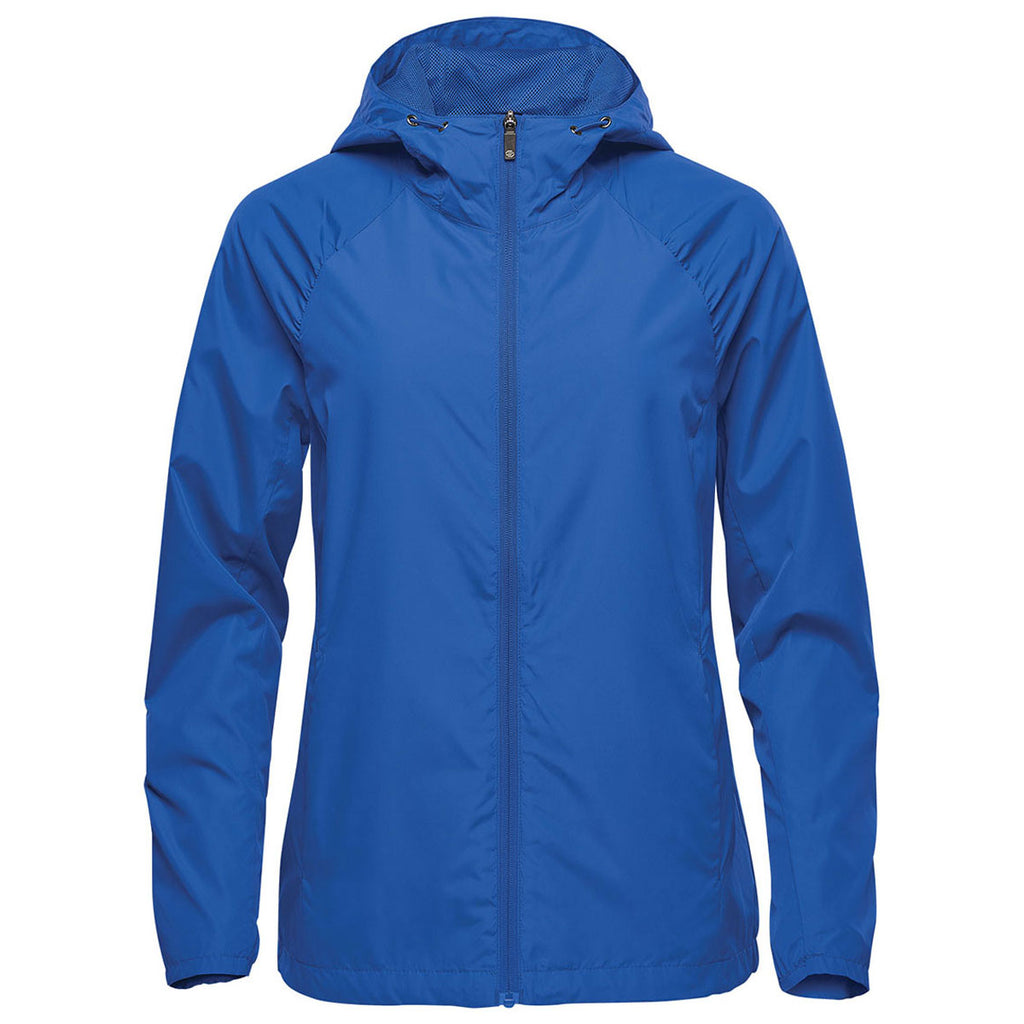 A custom embroidery on the Stormtech Women's Classic Blue Pacifica Jacket will create a custom gift that others will truly appreciate. This full front zip jacket is urban inspired and outdoor ready. The ultra-lightweight wind jacket provides a sleek, somewhat fitted silhouette with back mesh lined vent to keep you comfortable. Articulated elbows allow for freedom of movement and an attached hood keeps you protected during pop-up showers. The beautiful jacket has a simplistic design, but is perfect for a range of situations. Add a company logo to use as part of employee uniforms for those who have to work outdoors, but need to be able to move freely. Place an order today for these versatile jackets.Highlights