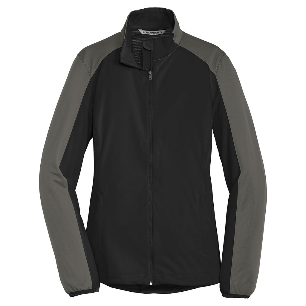 Port Authority Women's Deep Black/Grey Steel Active Colorblock Soft Shell Jacket