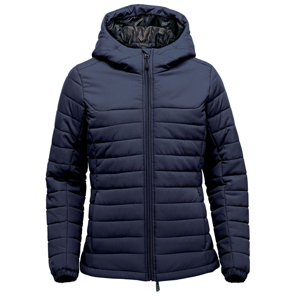 Stormtech Women's Navy Nautilus Quilted Hoody with embroidery creates a versatile look that is wonderful for most outdoor adventures. The outer layer keeps you dry with a waterproof finish, and the inner layer keeps you warm. Lightweight and easy to layer, this hoody is a must-have. Place an order right away.Corresponding Men's Style: Stormtech Men's Navy Nautilus Quilted Hoody