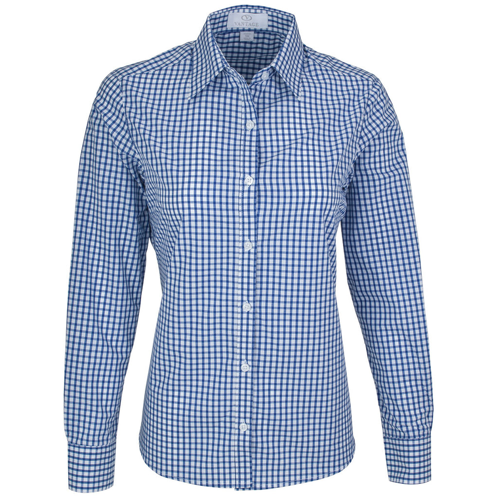 In response to widespread demand from our female customers, we added the embroidered Vantage Women's Royal/White Easy-Care Gingham Check Shirt to our extensive inventory of corporate apparel. Designed with a cotton and polyester blend, the versatile shirt softly caresses the skin and refuses to succumb to the rigors of frequent use. The spread collar and bust darts produce a feminine flair that will get you noticed at industry trade shows. Turn envious stares into strong sales by attaching your corporate logo on the large imprint area. Company logoed apparel offers you a great platform to advertise your company in the community.Highlights