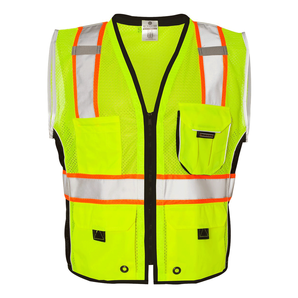 ML Kishigo Men's Lime Premium Black Series Heavy Duty Vest